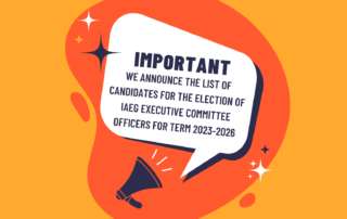 List of Candidates for Election of IAEG Executive Committee Officers for Term 2023-2026 Gallery List of Candidates for Election of IAEG Executive Committee Officers for Term 2023-2026 Highlights List of Candidates for Election of IAEG Executive Committee Officers for Term 2023-2026