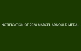NOTIFICATION OF 2020 MARCEL ARNOULD MEDAL RECIPIENT Gallery NOTIFICATION OF 2020 MARCEL ARNOULD MEDAL RECIPIENT Highlights NOTIFICATION OF 2020 MARCEL ARNOULD MEDAL RECIPIENT